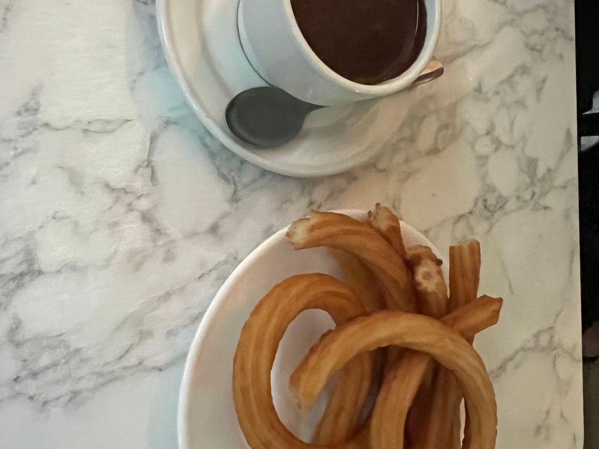 老舗のチュロス屋さんは何店舗もありますが本店に連れて行ってもらい混んでいるのでテイクアウトして食べました。
