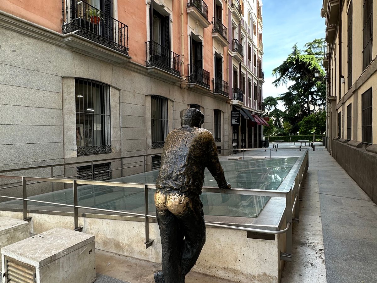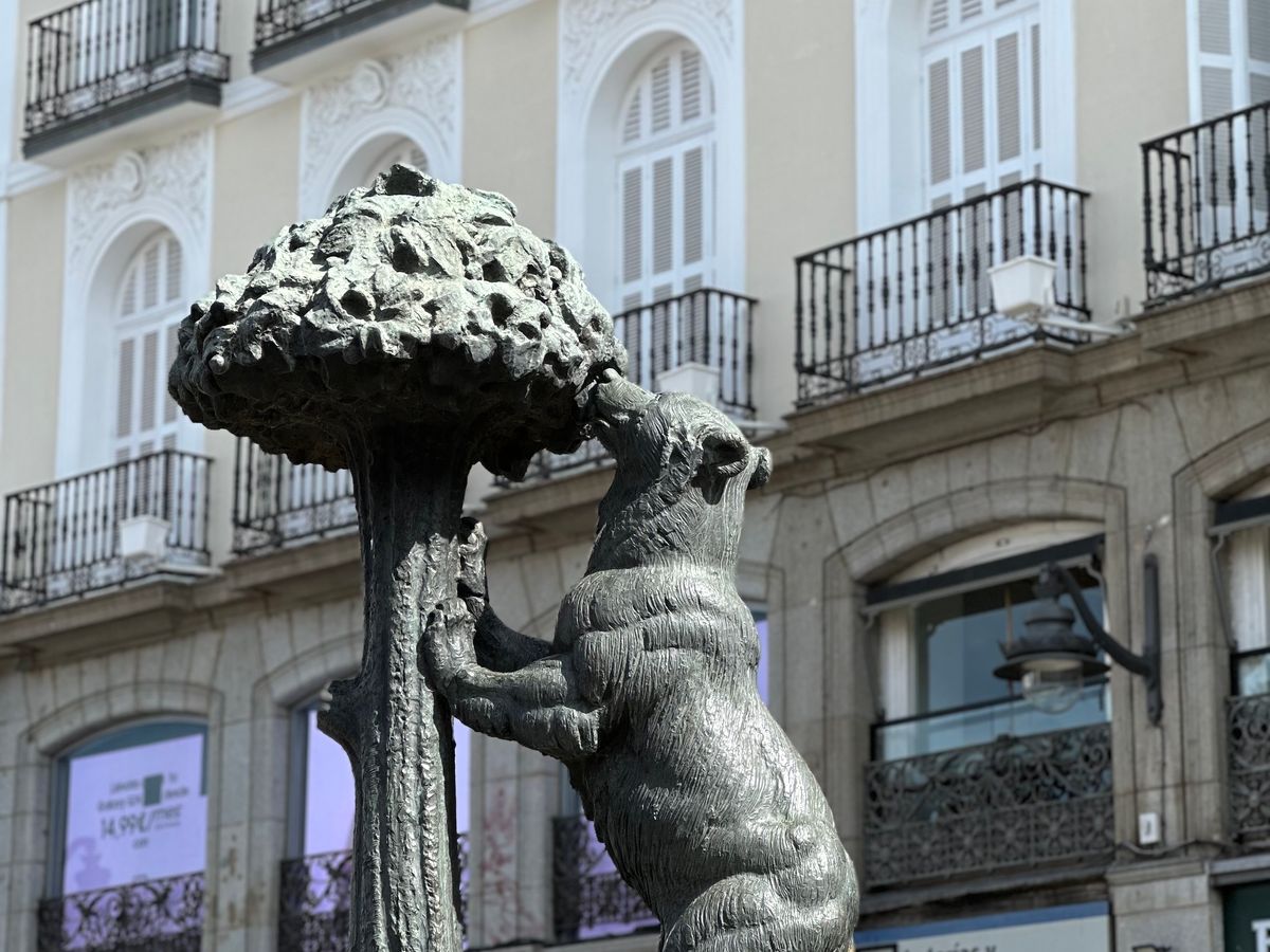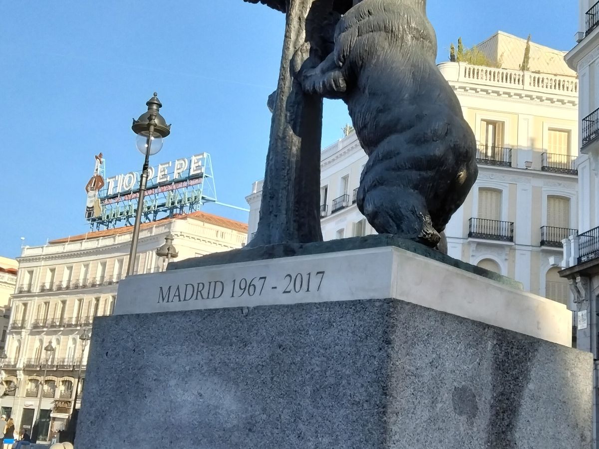 最初に、マドリードのシンボルである太陽の門と呼ばれるソル広場にある「クマとイチゴノキ」の像で待ち合わせ。熊の尻をなでると幸運になるということで、「すてきな旅になりますように」となでさせていただきました。すでにたくさんの人になでられて熊のおしりはピカピカ。