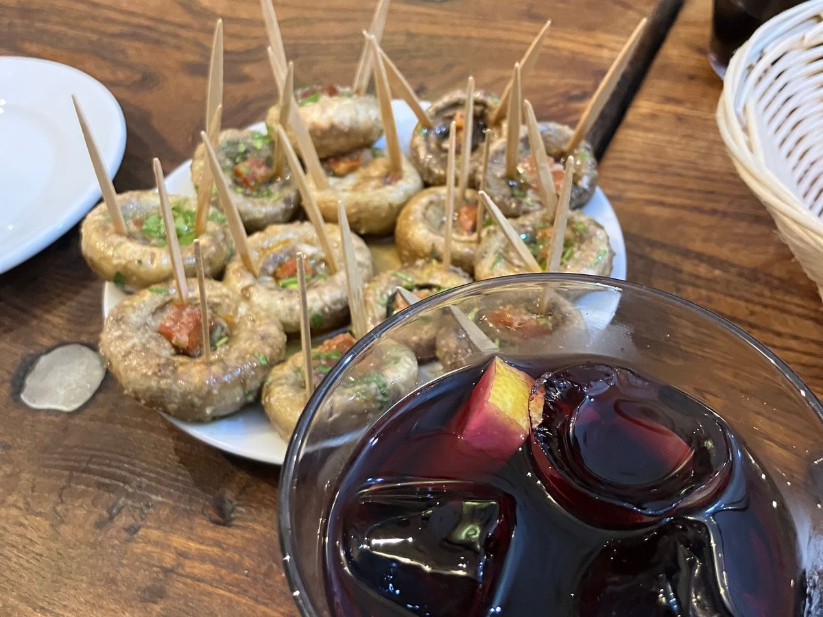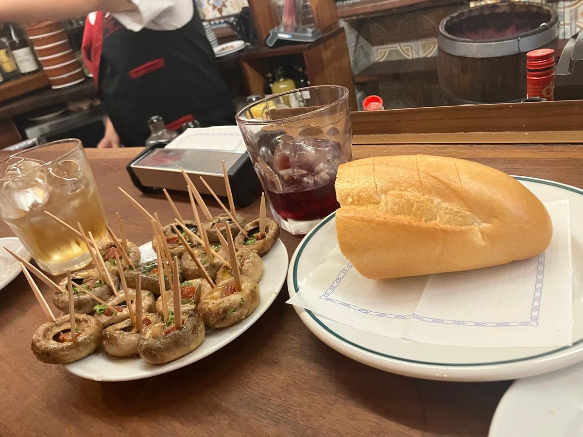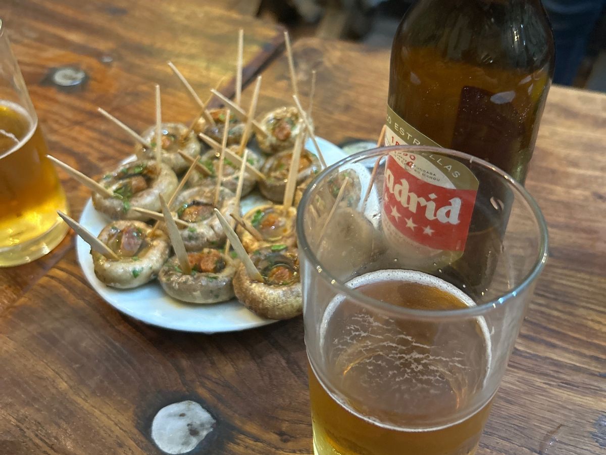 その後バル巡りへ。リクエストはありますかとのことで、マッシュルームとアヒージョは食べたい!と。まずチャンピニョンでマッシュルーム、ラブラでタラのフリッター、アブエロでアヒージョ、の順に連れて行ってもらえました。マドリードやその後に行く予定の各地のおすすめバル等も教えていただき、とても助かりました。(MARINA VENTURAのロブスターライスめちゃウマでした!)