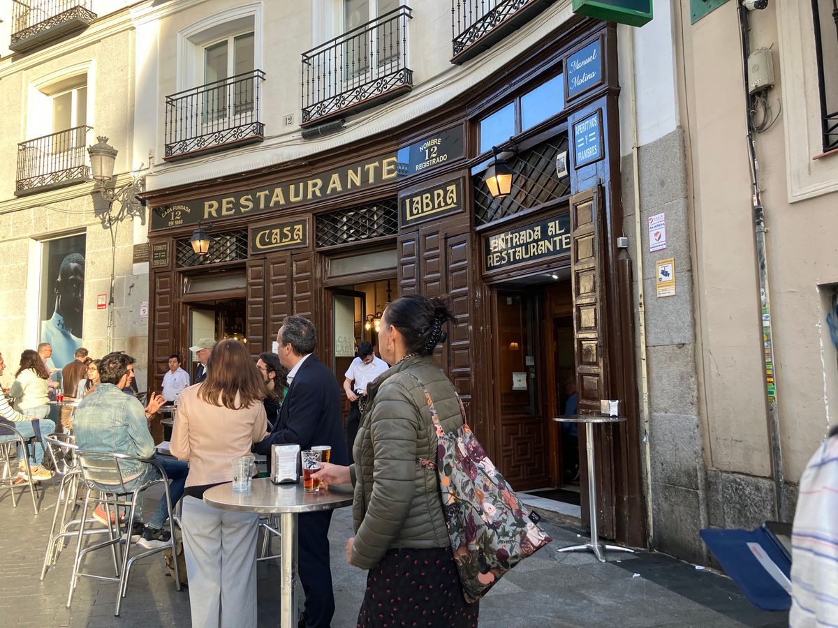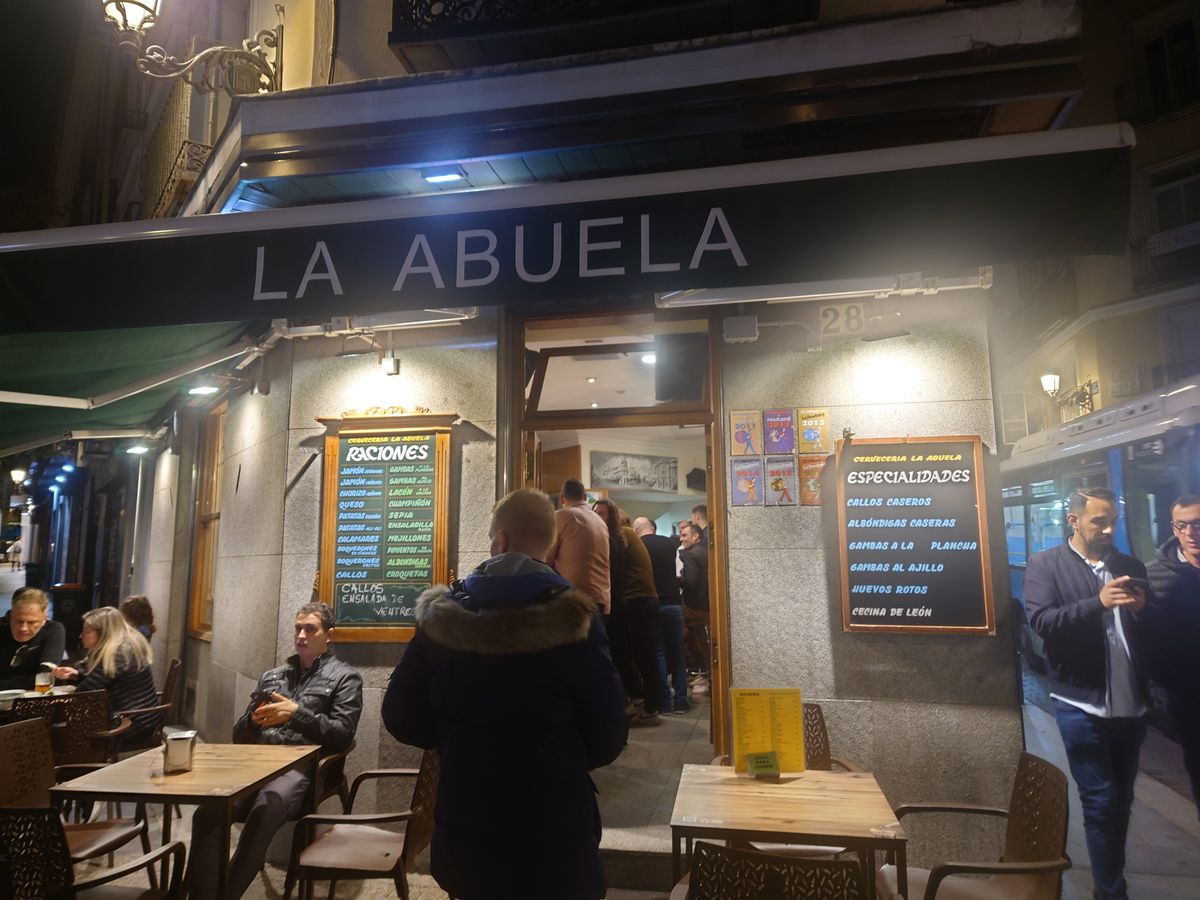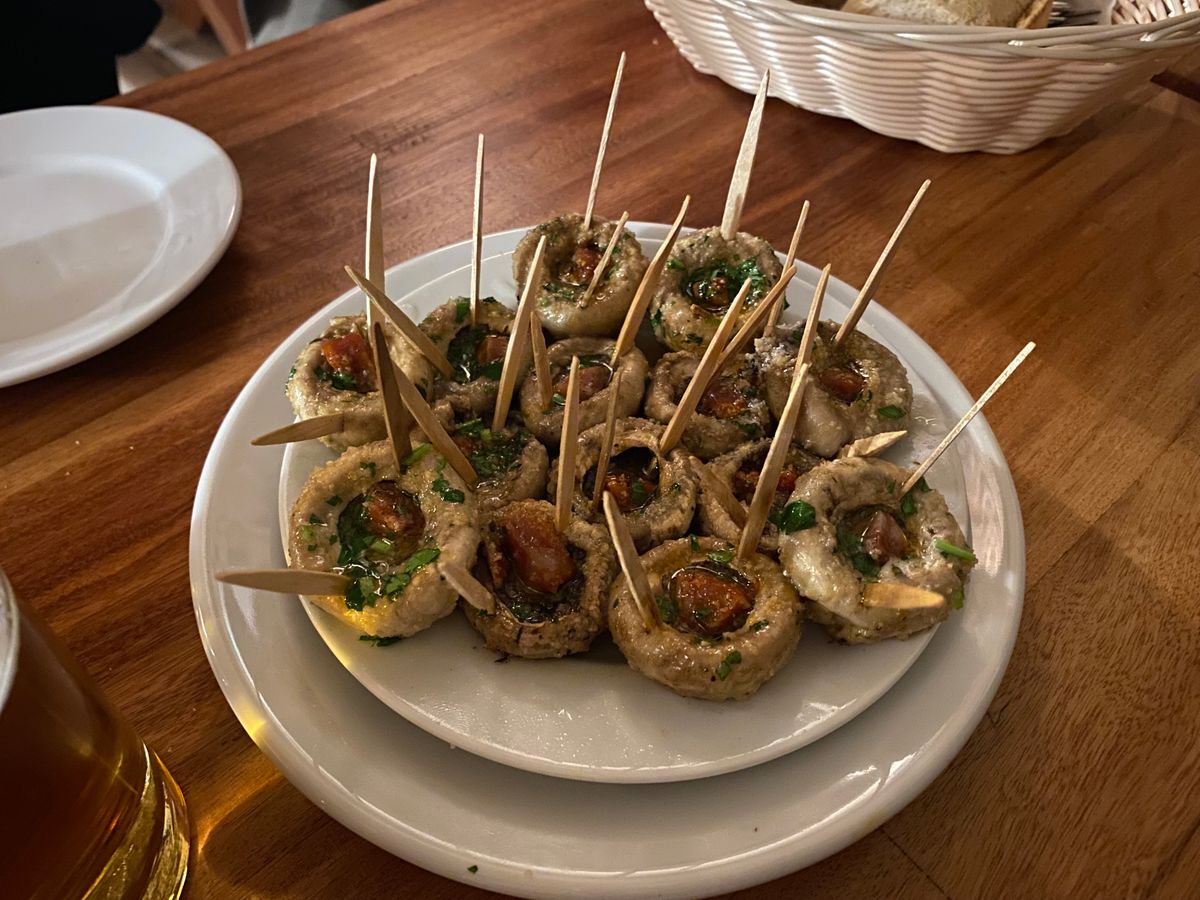 その後バル巡りへ。リクエストはありますかとのことで、マッシュルームとアヒージョは食べたい!と。まずチャンピニョンでマッシュルーム、ラブラでタラのフリッター、アブエロでアヒージョ、の順に連れて行ってもらえました。マドリードやその後に行く予定の各地のおすすめバル等も教えていただき、とても助かりました。(MARINA VENTURAのロブスターライスめちゃウマでした!)