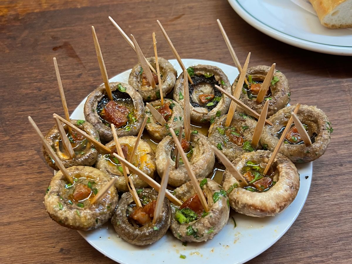 2件目の大きなマッシュルームを2本のようじを使って食べるチャンピニャンはとても美味しかったです。3件目も美味しくいただき、こちらのもっと飲みたいリクエストに答えて、さらにガイドさんがシェリー酒のお店に案内してくれ、(自腹になりますが)最高の夜を楽しむことができ、大満足のツアーでした。