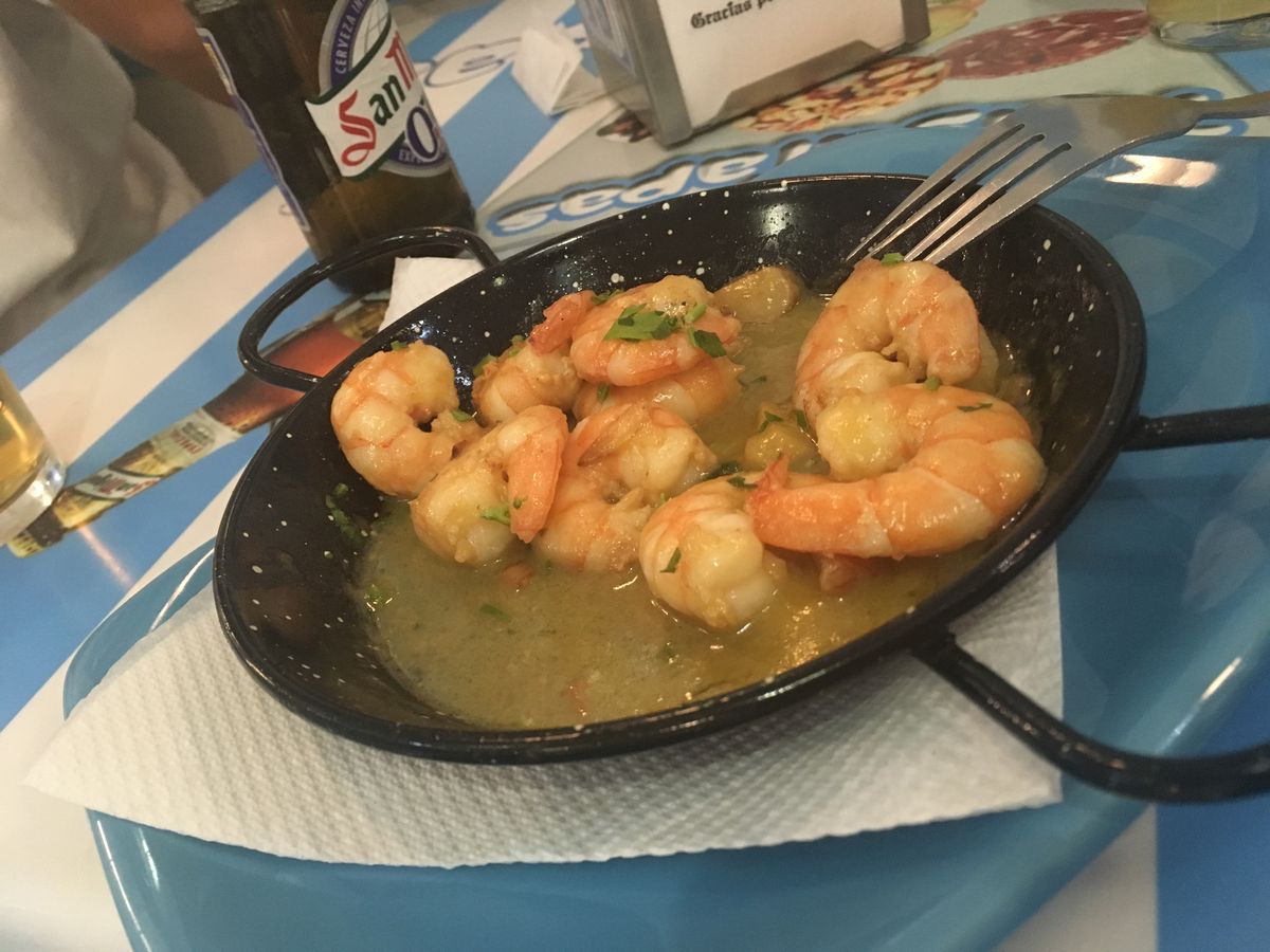お腹空いてたのであっという間に食べてしまいました。2軒目、イベリコ豚の生ハム。今まで食べたことないまろやかさに感動。3軒目、私達のリクエストでアヒージョ。エビたっぷりでほんとに美味しい。その上、初めてお会いしたとは思えないガイドさんの人柄に癒されました。思いがけず素晴らしいスペイン最初の日のイベントとなりました。ありがとうございました。