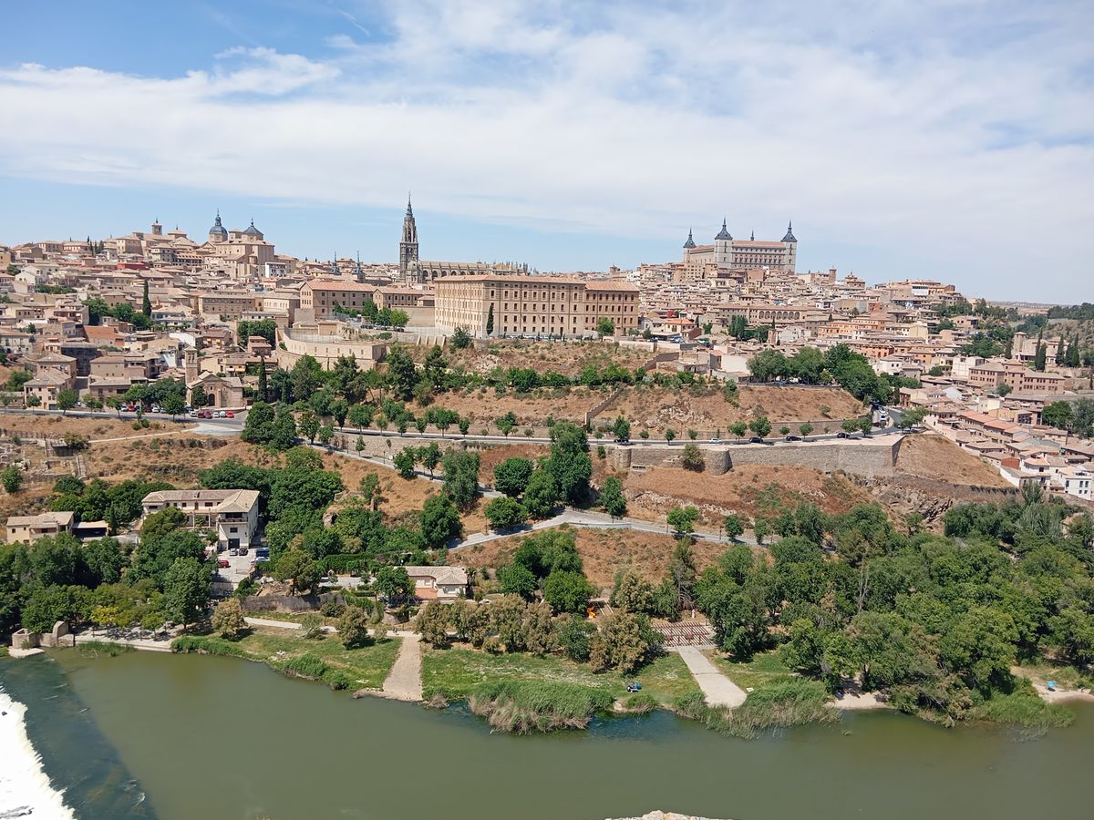 途中の展望台でバスを降り、川を挟んで眺めるトレドの全景は雄大でまさしく丘の上の要塞都市で、絶好の写真スポットでした。