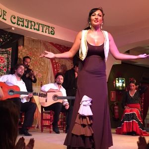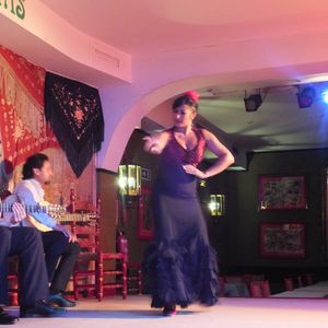 フラメンコのイメージは、カスタネットを持ってカチカチして踊る、なんか情熱的なやつ。くらいの印象でした。スペイン旅行が決まり、せっかくだからフラメンコを観ようか…お料理もついてるみたいだし…と、かるい気持ちでこのフラメンコショーを予約しました。お店はちょっとわかりにくい場所にあって(英語を話せる方、海外になれてる方ならすぐわかると思います 笑)チェックイン時間のギリギリにお店に着きましたが、ショー開始時間までは時間があったみたいで安心しました。ステージの目の前の席に通され、1番いい席だね!と驚き、わくわくが募りました。ドリンクを聞かれ、お料理が運ばれ、どれもとても美味しそうなお料理で、もうそれだけでこのショーを申し込んで良かったと思いました。ショーが始まり、女性が歌い、フラメンコって歌うんだ?と、フラメンコのイメージと違ったスタートでまたわくわくしました。女性の方、男性の方の素敵なフラメンコ、生演奏のギターと男性の歌声、フラメンコってこんななんだ!なんて情熱的‼︎‼︎と驚きました。踊り手の方は顔から情熱が伝わってくるほど感情がこもっていました。これは生で観ないとわからないと思いました。フラメンコショーを観に行って良かったと心から思います!大袈裟ですが、死ぬまでにもう一度またみたいです。
