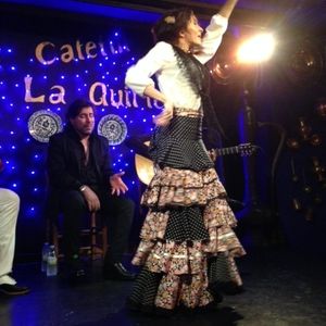 本場のフラメンコが見たくて予約しました。街中をふらふらと散策しながらお店に向かっていると路地に面してそれらしい建物が。入口でバウチャーを見せるとすぐに席に案内してくれました。なんと席はステージの真ん前!。その後、すぐにディナーがはじまり、次々とお料理が八個ばれてきました。皆美味しかったけど、何といってもパエリャが美味しい。お米とレモンとお出しの絶妙なバランスが日本では味わったことのない美味しさでした。ディナーが終わると、ショーが始まります。男女二人づつ計4人がステージにあがり、男性一人はギターですが残り3名が一人づつ踊りを披露してくれます。中でも女性のうちの一人の踊りは大変情感がこもった、少し鬼気迫るって感じの激しさのある踊りでよかったー。あっという間に時間が過ぎました。大変満足しました。