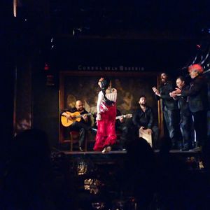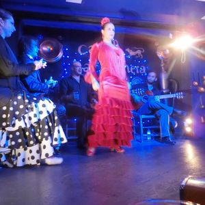Google Tripsアプリでクーポンを見つけましたが、正直少し疑っていました。しかし、ショーは期待を裏切りませんでした!フラメンコを見るのが初めてなら、ぜひこの場所を検討してください。私たちが後のショーに到着したとき、場所はそれほど混んでいなかったので、前列の席を確保できました。また、予算を気にされる方には、こちらのメニューは少し高めです。ほとんどの料理は20ユーロ以上で、夕食のために何かを購入することが期待されるでしょう。