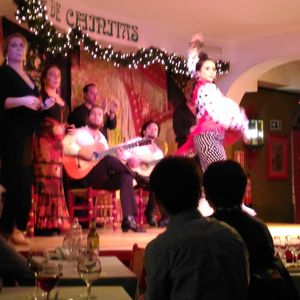 フラメンコはすごく近くで見れて、感動でした。情熱の踊りにほかの観客の方も一緒に手拍子や掛け声などして盛り上がり、いい雰囲気でした。踊りを見ながらワインとディナーができていいのですが、そんなに、美味しい!というわけではないです。ステーキを選んだのですが結構硬くて食べるのに必死でした。フラメンコは9時ぐらいに始まったので食べる時間は9時〜10時過ぎと遅いです。ディナーはつけずに先に食べておくのもいいかもしれません。