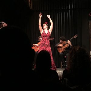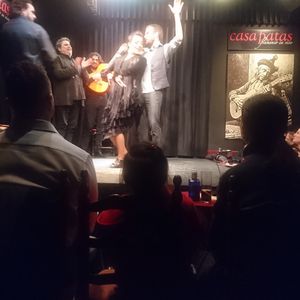スペインに行くからには本場のフラメンコショーを見たいと予約。なんとステージ1番前の席にネームプレートが置かれ安心しました。地下鉄近くの店で徒歩で行けます。ダンサーも歌い手もギタリストもとても素晴らしく是非又機会あれば行きたいです。このお店は入口手前がレストランでその奥にステージがありとても広かったです。
