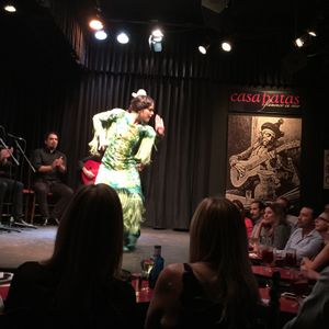 仕事で初めてのスペイン。最終日の夜にフラメンコ&ディナーを予約。場所はグランヴィアの便利なところでした。8時過ぎに店に行きましたが、前の団体の会が遅れており、8時半に再度また出直しました。バウチャーにその可能性は書いてありましたので、よくあるようです。地下に降りると、こじんまりした丁度いい大きさの異国情緒のあるタブラオです。ディナーもつけていたので、ステージのすぐ横の席に案内してもらいました。シンプルなコースディナーで、味は合格点。全体的に日本人の口に合う味付けです。同僚は美味しい美味しいと食べていました。食べ始めて暫くするとフラメンコが開始。男性のダンサー一人。20代、30代、60代の女性ダンサー3人が、いずれもキレのある熱い踊りを見せてくれて、とても盛り上がりました。これぞスペイン!というかんじで期待通り、コスパもいいと思います。また見たいです。