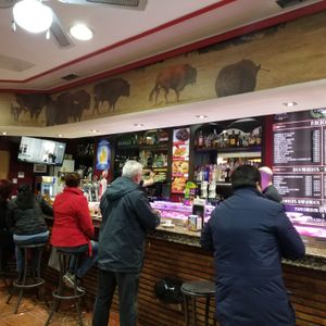 集合場所近くで明るいお店が1件だけありました。店名は「Cafetería Cesar Las Ventas」。寒いので温かいコーヒーを頼み、バスに乗る前のトイレを済ませました。暗い時間帯なのに結構お客さんはいっぱいいました。