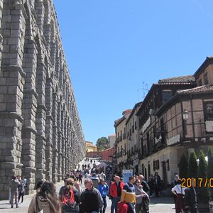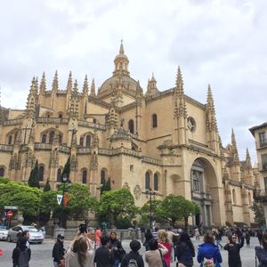 11時半にトレドを出発し、セゴビアに到着が2時ごろ。水道橋の広場でランチのため、1時間半のフリータイム。ガイドさんの案内のもとお城まで30分位。お城の入場料はツアー料金に含まれています。但し、塔の入場料は別なので、自分で購入する必要があります。今回参加した時は、お城の中にはガイドさんは入ってきませんでした。お城の前でチケットを渡され、1時間後に水道橋に集合。お城から水道橋までは説明を聞きながらだったので、30分程かかりましたが、ただ歩くだけなら、ゆっくり歩いて20分程です。普通の人の1.5倍は時間のかかる同行者(高齢者)でも、お城をゆっくり見て、写真を撮り、水道橋まで歩いて戻れます。カテドラルに入場したければ、ランチのフリータイムを利用するといいでしょう。子豚の丸焼きを食べたい人は、ランチのフリータイムをそちらに利用するほうが良いと思います。