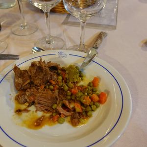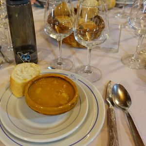 アビラでは城壁内を散策します。芝生が青々と茂っていて、青空と立ちはだかる城壁とのコントラストが最高でした。教会を2つ程見学してセゴビアに60分程移動します。目の前にフレームに収まりきらないド迫力の水道橋が眼前に広がります。13時半過ぎにレストランに到着し、豆スープとフランスパン、牛すじ煮込み、豆サラダ、アイスクリームをいただきまし。ドリンクは別料金でお水が2ユーロでした。沢山の写真がかざってあり有名なお店かなと思わせます。