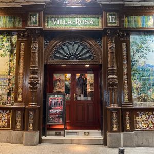 ホテルから地下鉄を2回乗り換えて、Sol駅へ着いた。12/29/2019 20:00 Sol駅周辺は大混雑。それでも地図を片手に、チラチラと街並みを楽しみつつ余裕を持って予約時間前に目的地の「Villa Rosa」へ到着(直接行くと、4分ぐらいで行ける)。