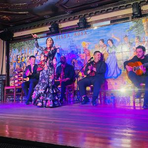 集合時刻18時半に行った。バーでちょっと待っていると、席に案内していただけて、場所は舞台に向かって横に並ぶ二人席でした。まず料理を食べてそのあと1時間ほどショー。料理は思ったよりいけていて食べれた。ステーキうを注文したが、200gほどあったか食べ応えがあったし、まあまあおいしかった。ショーもギターと踊りて2人と歌い手2人の計五人。手拍子に合わせて手をたたいている人は、たたかないように注意されていた。一緒に盛り上るというより、むしろ静かにフラメンコ、ギター演奏を聴くという雰囲気です。