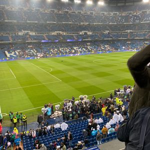 サッカーを今まで観戦したことがなく、せっかくならとカテゴリー1の席を予約しました。当日チケットを見せると、スタッフの方に「こっちにきて」と案内されて行った場所はまさかのVIPルーム!試合前に軽食(ドリンク飲み放題、生ハムやタパスなどたくさん)が食べれる場所で、中にはレアルマドリードの優勝カップがたくさん飾られていて興奮して写真をたくさん撮りました。席は前から3列目ぐらいで、試合中選手がとても近くまできていてすごかったです。試合はレアルマドリードが5-1で勝利!いい席でみれてとても満足でした。