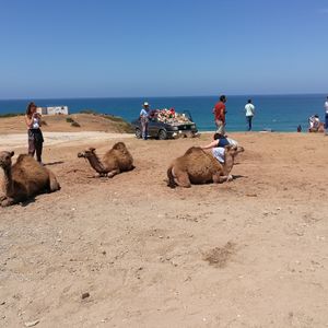 タンジールには、これといった見どころはありませんでした。フェリーでジブラルタル海峡を渡り、タンジールに到着後は、観光はほとんどバスの中(車窓のみ)が多かった気がします。バスから降りたのは、海が見える見晴しのよい展望台のような場所で、降りて写真を撮ったのと、砂浜で希望者のみラクダに乗って、記念撮影をしました。ラクダに乗せてもらうには、1ユーロか2ユーロ払いました。(降りる時にはお金は不要ですのでご安心を!)