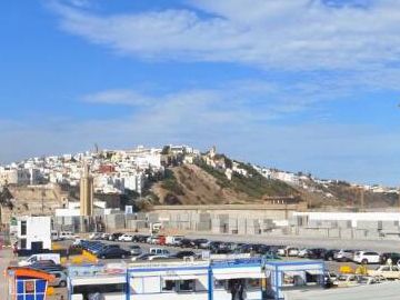 実際は集合時間が1時間遅らされて7時集合、港に着いたのは10時過ぎ、そこからフェリーに乗るまで約2時間待ち、12時に出発して1時間かけてやっとタンジール到着。