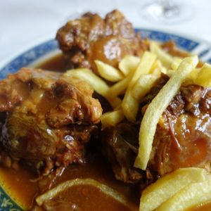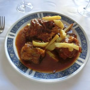 お昼は、牛テール。ワイン付き。ガイドさんも同伴。