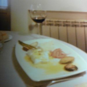 魚料理がメインの夕食。赤ワインで楽しむ。