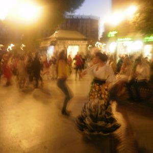 町をタクシーが拾える場所まで歩くと、公園でフラメンコを踊っている。