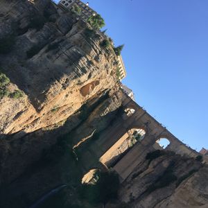 ロンダの石橋へはバスでは通れない細い田舎道を通って、橋の真下に到着。崖底地点で見上げる絶景をロッククライミングをする若者2人と堪能しました。