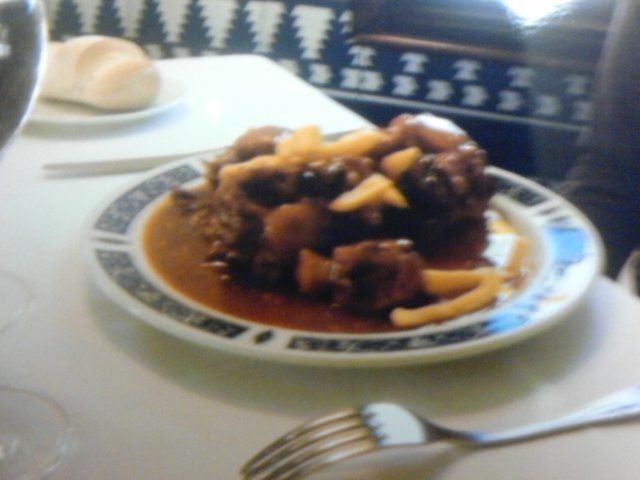 お昼は、牛テール。ワイン付き。ガイドさんも同伴。