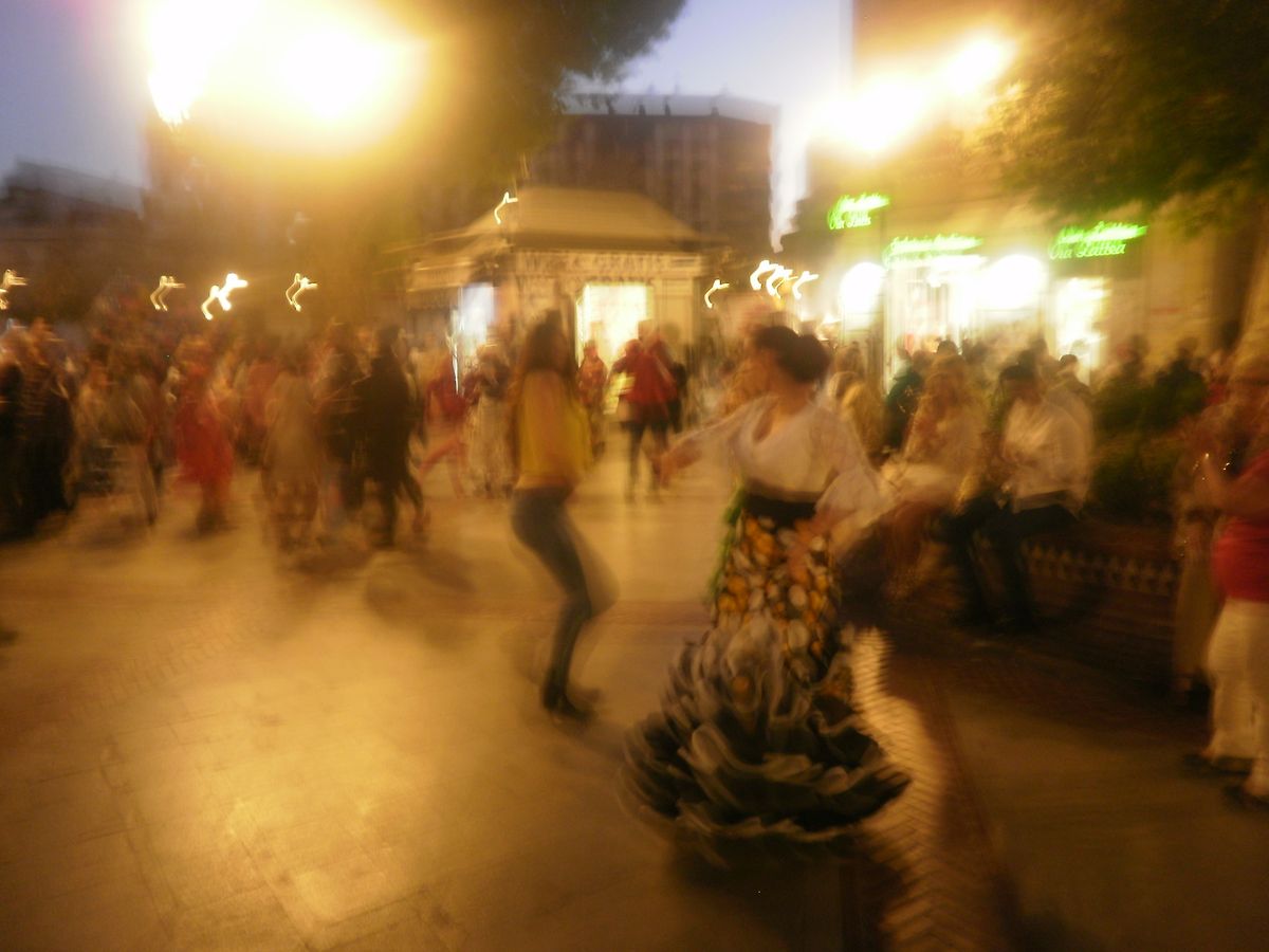 町をタクシーが拾える場所まで歩くと、公園でフラメンコを踊っている。