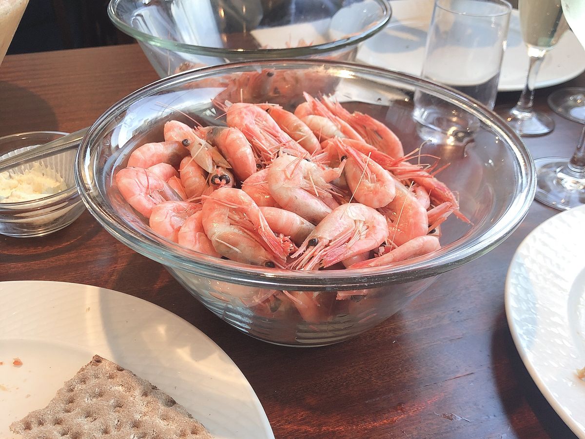 出発時間、場所間違いなくいけて一安心でしたが、中に入ってお隣さんや後ろの方々と近すぎて最初がっかり!このまま三時間もクルージングはきついなあって考えていたら、隣りのご老人からチャイニーズ❓と聞かれジャパニーズって答えたら仕事で日本に一年いたよ〜〜って話しが盛り上がり、先方はロンドンから里帰りの娘さん家族と一緒だったため大勢で色々な話で楽しみました。今ではロンドンとストックホルムにすばらしいお友達ができ次の旅行先が決まった感じです。ほんとにエビの量がすごいですよ〜