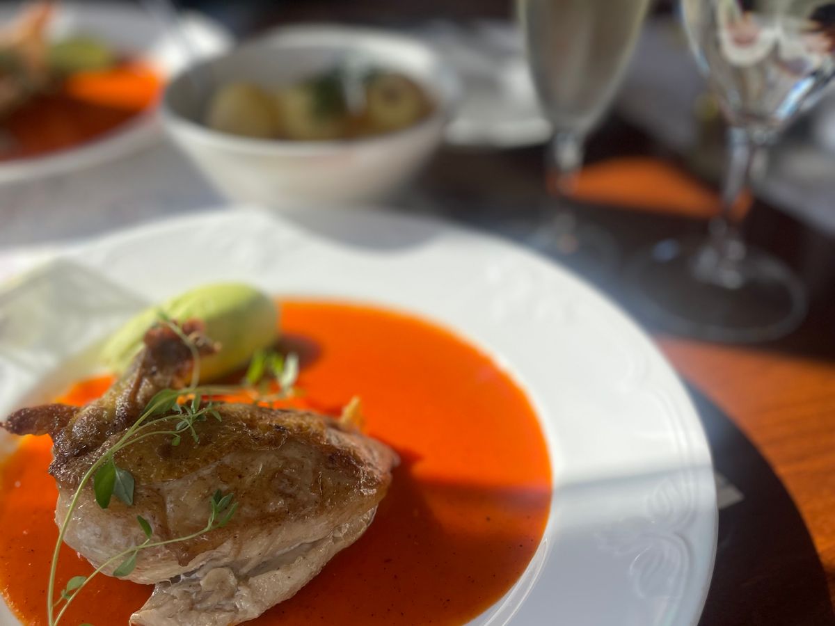 ランチとディナーは船内のダイニングで2部制で行われます。お料理はスムーズに提供されとても美味しかったです。(ランチは鶏むねのロースト、ディナーはチョイスできる前菜とメインはサーモンのお料理でした)。