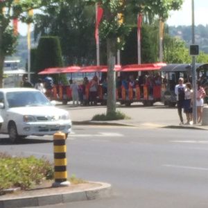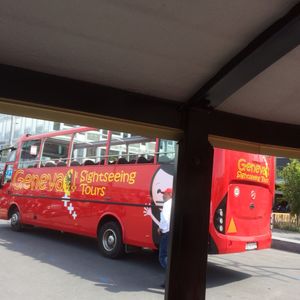 集合場所はジュネーブ駅から歩いて数分。分かりやすい場所です。私達は午後出発だったので、少し早めに集合場所に到着し、周辺のレストランでランチ。出発までゆっくり時間を過ごせました。まずはバスの乗り1時間ほど国連などの主要スポットを周ります。途中下車して写真撮影もできました。その後街中を回る小さな観光列車に乗車。旧市街を走るが説明は全くない。スピードが早く、写真はブレ気味。