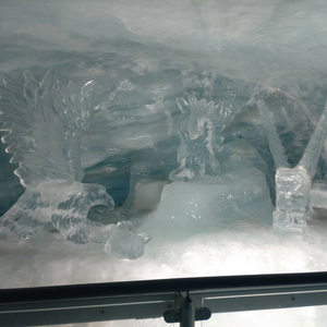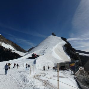 展望台から初めて氷河を見ました。氷河が下へゆっくり流れている様子は神秘的でした。展望台の外の雪道を少し歩きました。風が吹くと、雪が舞い上がり視界が遮られることもありました。真夏に来ましたが、ここは1年中、冬の世界でした。ユングフラウヨッホには、ちょっとしたアトラクション的な氷の回廊、レストランや土産物店などもあり、ここが地上3500m近いことを忘れてしまいそうでした。