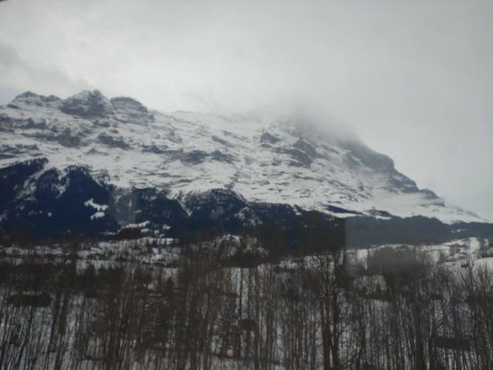 帰りは別のルートで、クライネ・シャイデッグ経由でグリンデンワルトに帰りました。天気は少しずつ回復していたが、アイガー、メンヒ、ユングフラウの山頂は少し雲がかかっていた。ここからはこのアルプスの3つの山が見えました。山が近すぎて、大きすぎて、圧倒的な存在感で迫ってきました。