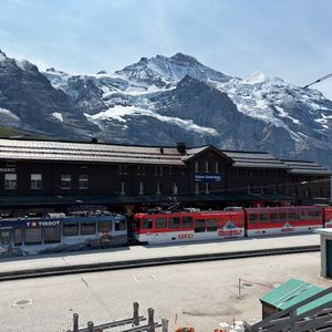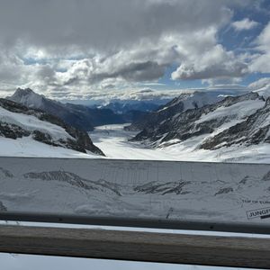 まず、天候に恵まれ最高の眺望でした。アイガー、ユングフラウ、メンヒが近くから迫り迫力満点で、眼下の景色も良かったです。風があり気温も2℃(体感は氷点下)くらいで寒かったですが、外の空気は澄んで清々しいかったです。感動のユングフラウヨッホでした。登山電車からみるグリンデルワルト村も雰囲気がありました。