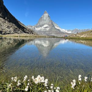 ツアーの最初から最後まで天気に恵まれ、最高のマッターホルンでした。ゴルナーグラート駅の展望台からは朝日に照らされたゴルナー氷河が間近に、マッターホルンは右手奥に見え、アルプスの美しさを感じました。リッフェル湖の逆さマッターホルンを見たくて、このツアーに参加しましたが、ツアー紹介の写真と同じ風景を見ることができて満足です。ローテンボーデンからリッフェルベルクのハイキングも初心者にちょうどよいものでした。左手にマッターホルンを眺めながら下っていくルートもわかりやすかったです。途中、高山植物の花も見ることができました。リッフェルベルクのレストランでの食事もマッターホルンを眺めながら食べることができて、最高でした。ツアーの参加者は私一人でしたが、ガイドが一人ついてくれました。
