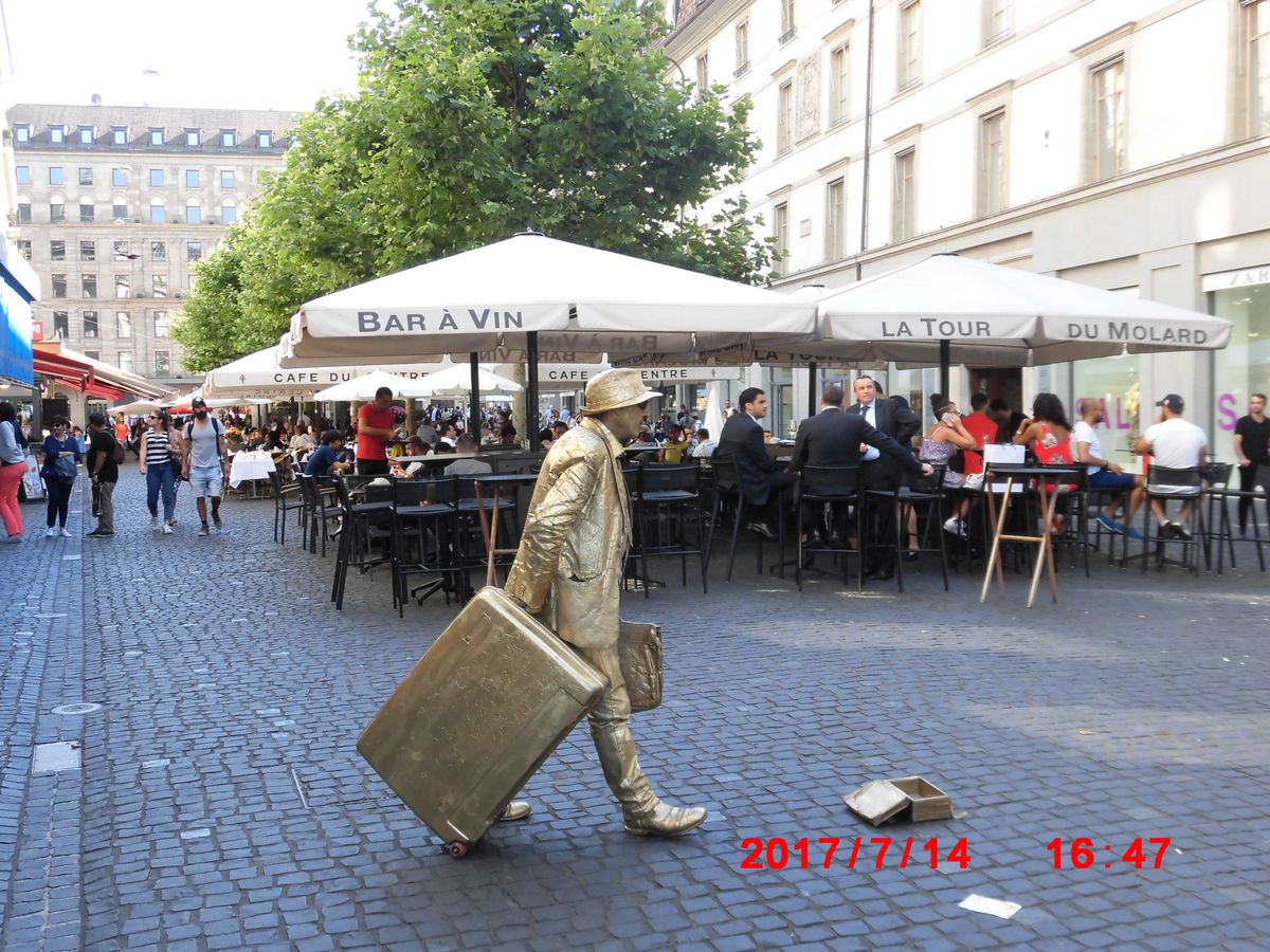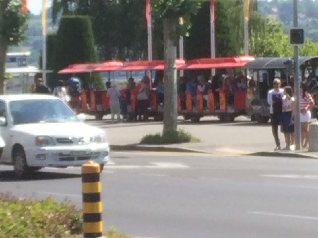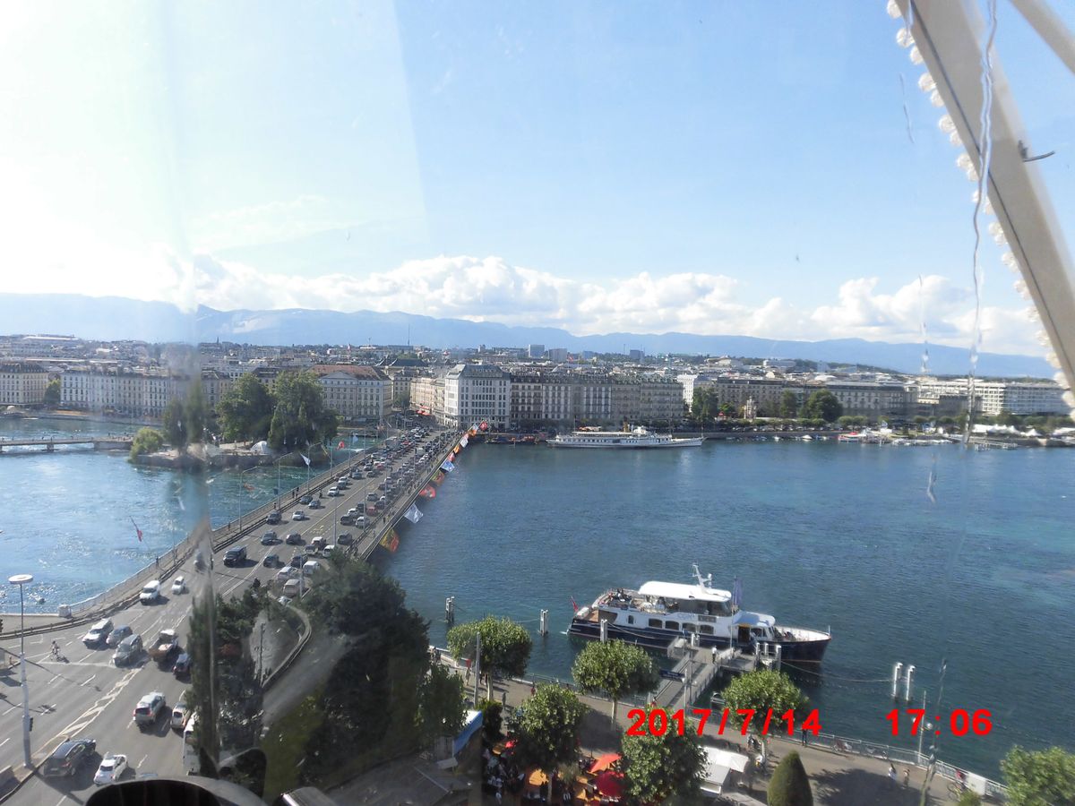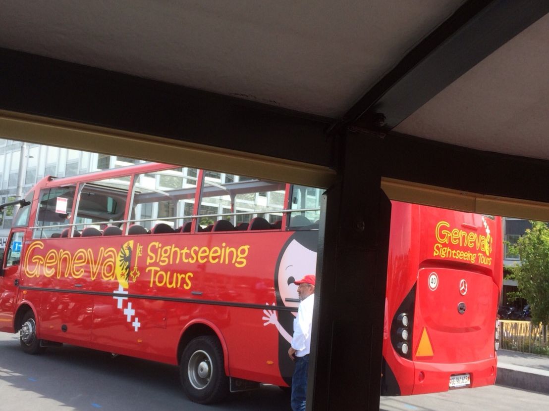 集合場所はジュネーブ駅から歩いて数分。分かりやすい場所です。私達は午後出発だったので、少し早めに集合場所に到着し、周辺のレストランでランチ。出発までゆっくり時間を過ごせました。まずはバスの乗り1時間ほど国連などの主要スポットを周ります。途中下車して写真撮影もできました。その後街中を回る小さな観光列車に乗車。旧市街を走るが説明は全くない。スピードが早く、写真はブレ気味。