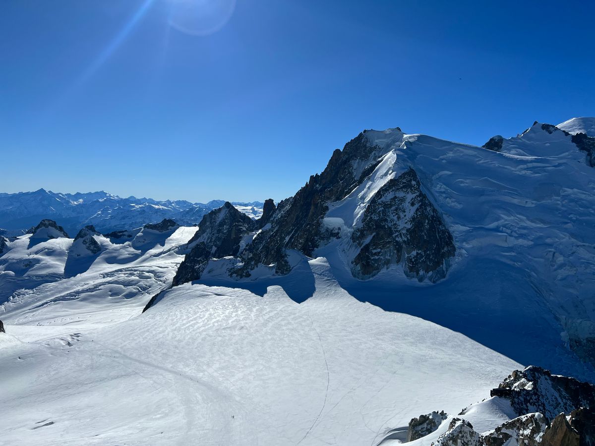 ケーブルカーで エギーユ・デュ・ミディに上がりますが、景色はとても言葉で表すことができないほどです。標高が3800mくらいのため、私はどうやら高山病のため途中で気分が悪くなり他のツアー参加者より先に下山をしました。