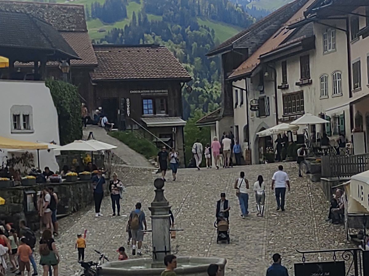 グリュイエールの町で二時間ほど自由時間になりますが、試食で既に満腹なのでランチにするでもなく、お城をみるしかありません。入場料に別途12フランかかります。小さなお城ですが、上から眺める町の景色は綺麗です。