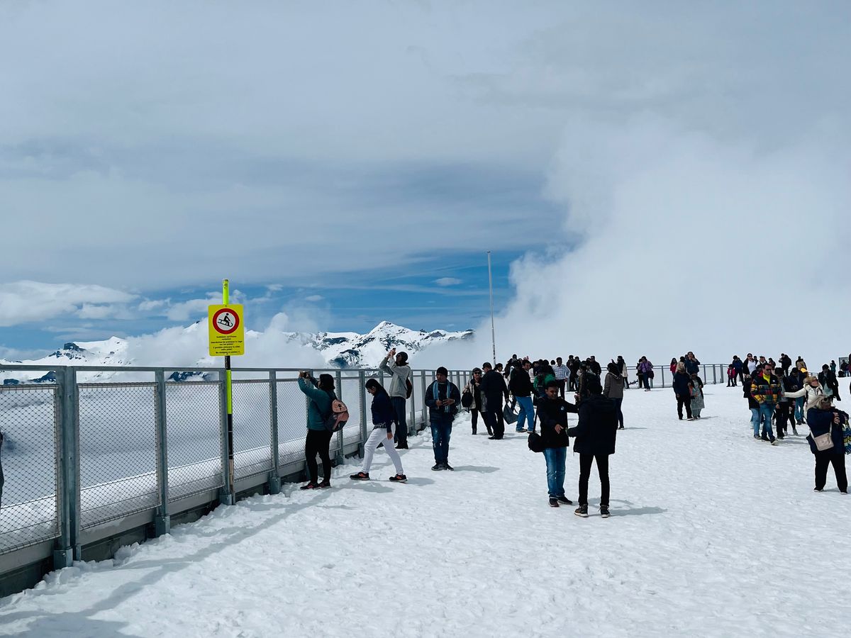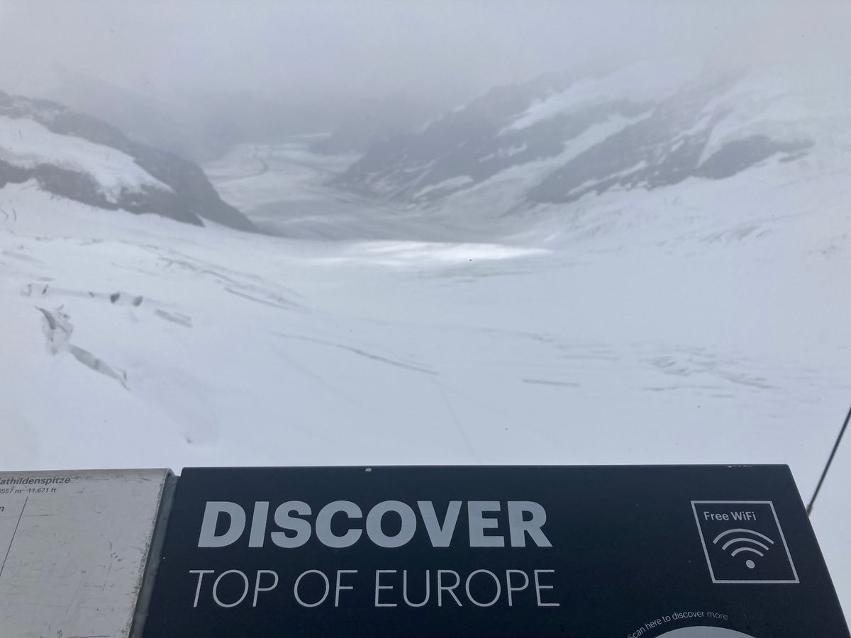 新婚旅行でチューリッヒから参加しました。当日の予報は雨、、。こればかりは仕方ないと思いつつ、、ゴンドラで霧が晴れ「おお!これは頂上も晴れるかしら!!」と思いましたが、、ユングフラウはあいにく雪雲に包まれ、絶景とはなりませんでした。