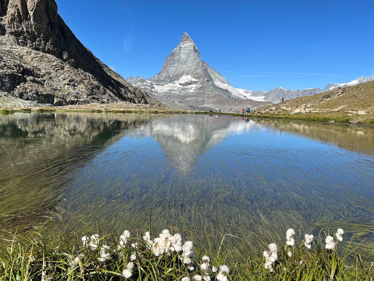 ツアーの最初から最後まで天気に恵まれ、最高のマッターホルンでした。ゴルナーグラート駅の展望台からは朝日に照らされたゴルナー氷河が間近に、マッターホルンは右手奥に見え、アルプスの美しさを感じました。リッフェル湖の逆さマッターホルンを見たくて、このツアーに参加しましたが、ツアー紹介の写真と同じ風景を見ることができて満足です。ローテンボーデンからリッフェルベルクのハイキングも初心者にちょうどよいものでした。左手にマッターホルンを眺めながら下っていくルートもわかりやすかったです。途中、高山植物の花も見ることができました。リッフェルベルクのレストランでの食事もマッターホルンを眺めながら食べることができて、最高でした。ツアーの参加者は私一人でしたが、ガイドが一人ついてくれました。