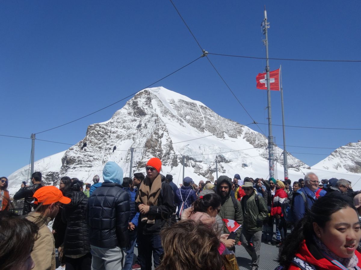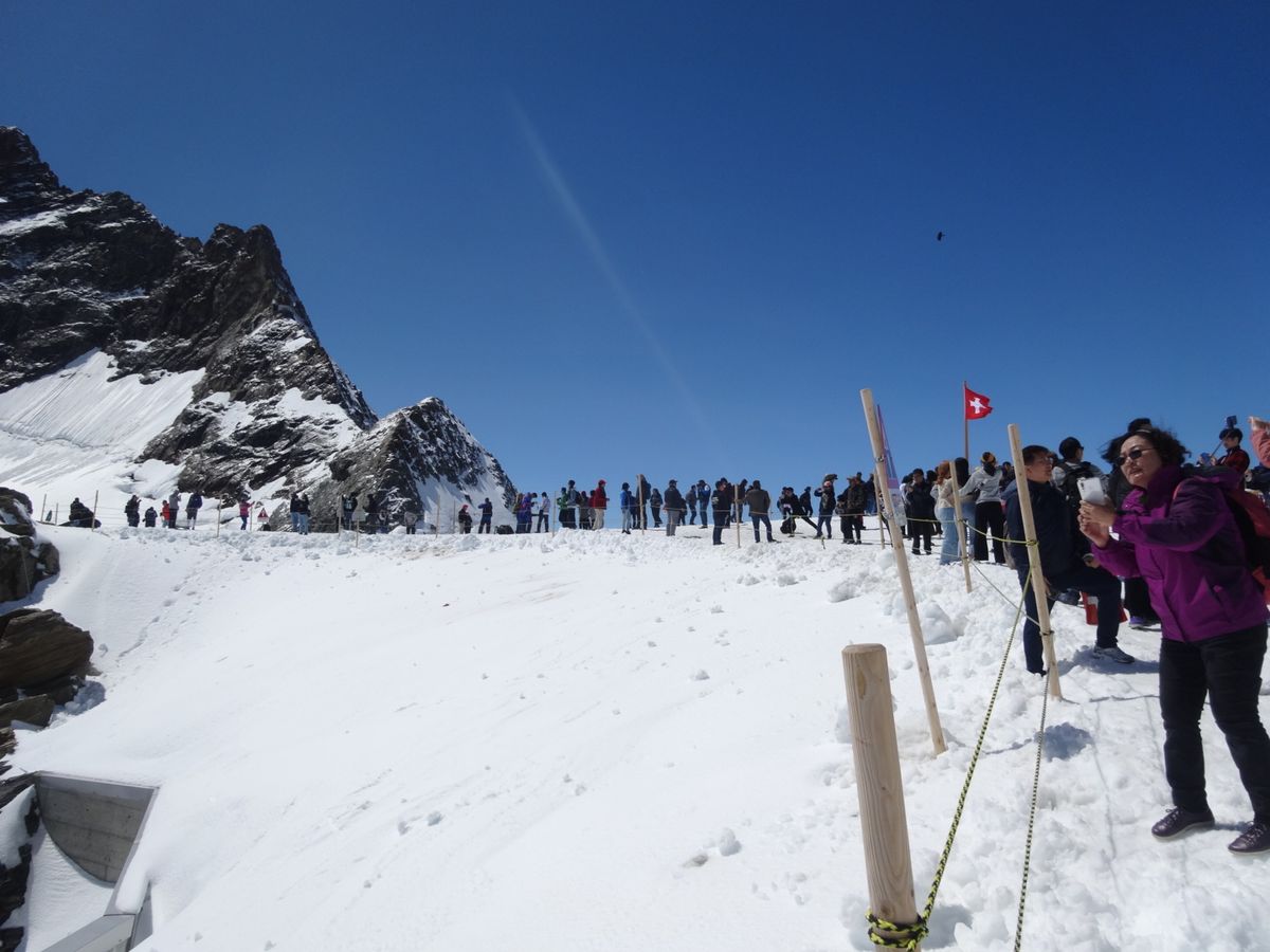 前日にグリンデルワリトに行った時は、雲の中にいるような状態だったので、次の日のユングフラウの当日も眺めはダメだと覚悟していきましたが、途中は、雲や霧が出ていましたが、ユングフラウのてっぺんは、突き抜けていて、素晴らしい眺めでした。今回2度目でしたが、最高に綺麗な景色を撮ることができてよかったです。ただ、やはりチューリッヒ からは、遠く、インターラーケンまで2時間、インターラーケンから、バ途中登山列車になりますが、ほぼ2時間かかります。
