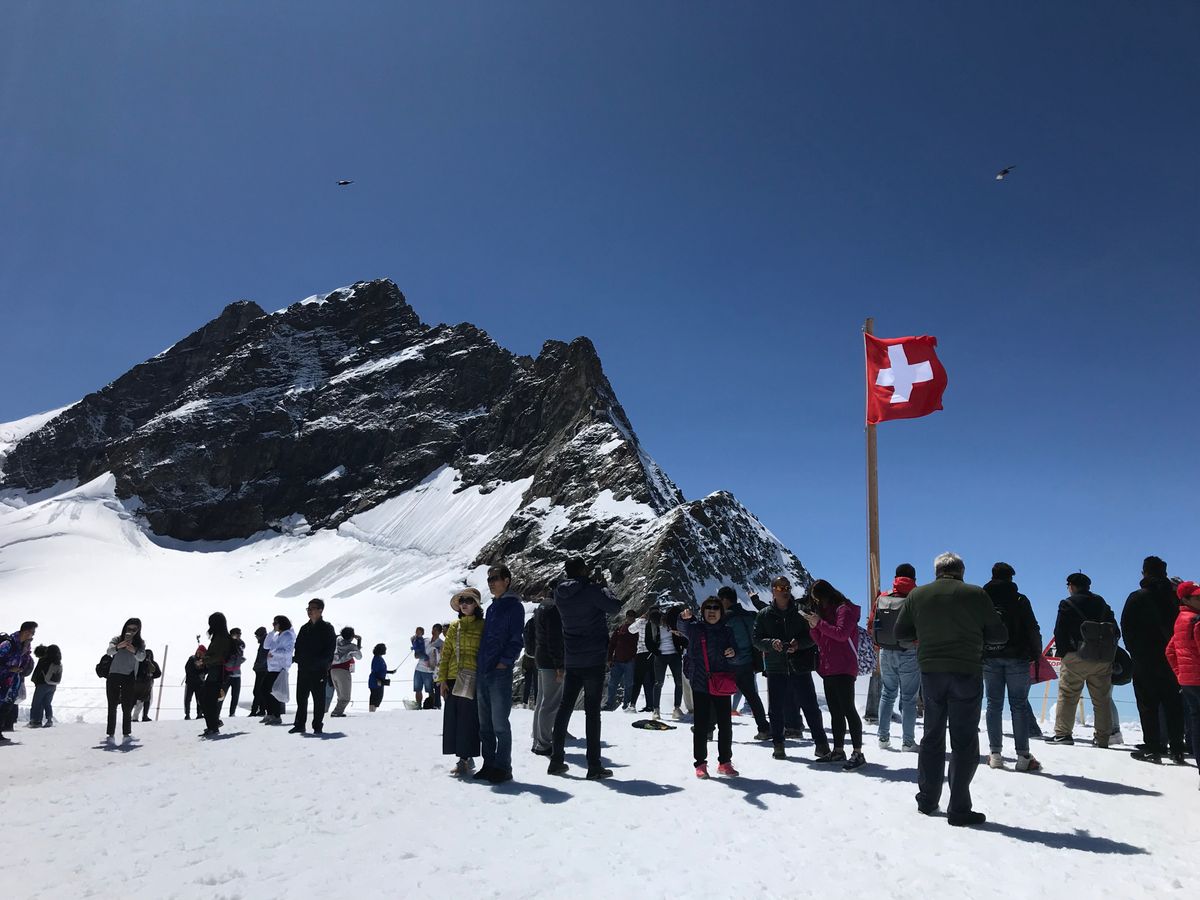 今回参加したのは5月中旬、当日曇って、山頂に着いたら真っ白、美しい氷河の景色が見られませんでした。残念です。行くならやはり夏がいいなと思います。今度機会がありましたらもう一度夏に行きます。添乗員は60歳余りの女性、行く途中英語とドイツ語で止まらなく熱心でよく紹介しました。チューリッヒで観光客は日本人が少ない、中国人とインド人が多い!びっくり程。一気に山頂3570mへ登り、高山病には要注意。