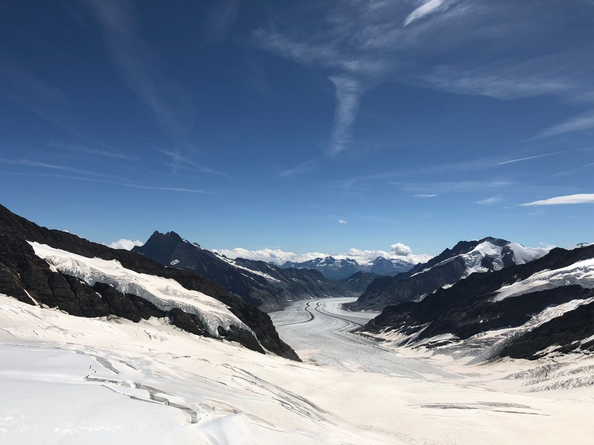 ユングフラウヨッホへの登山鉄道からの景色は絶景でした。展望台は残念ながら真っ白でしたがプラトーではすっきりと晴れ、美しかったです。少し怠さがでて軽く高山病にかかりましたが下山したら治りました。