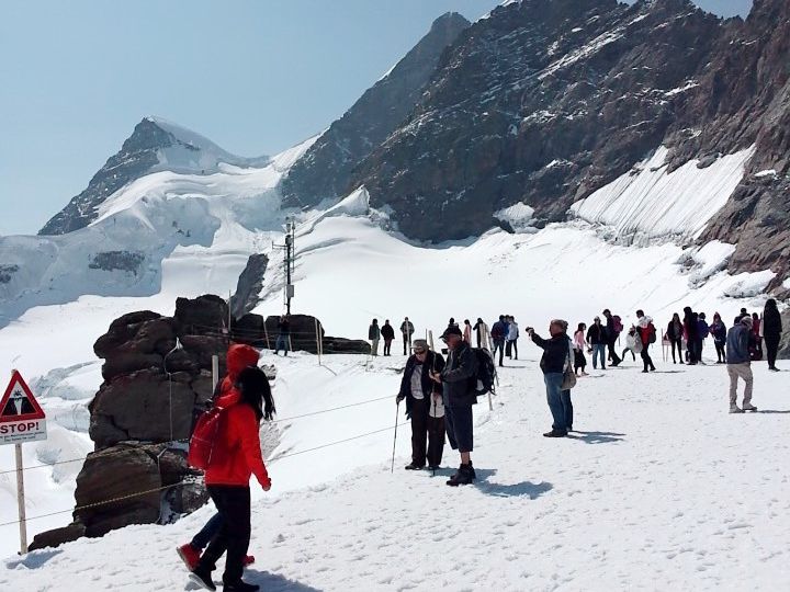 8月でしたが、天気が悪く雨雲か雪雲の中で、残念ながら上では何も見えませんでした。ツアー詳細にインターラーケンで昼食を調達するようお勧めがありましたが、上で買わない人には座るところはほとんどありません。展望台レストランはガラガラで、そこで食べた方が良かったです。ガイドさんの説明もあまり面白くありませんでした。