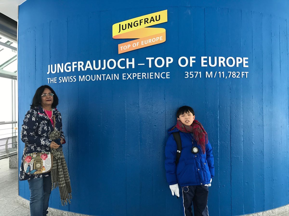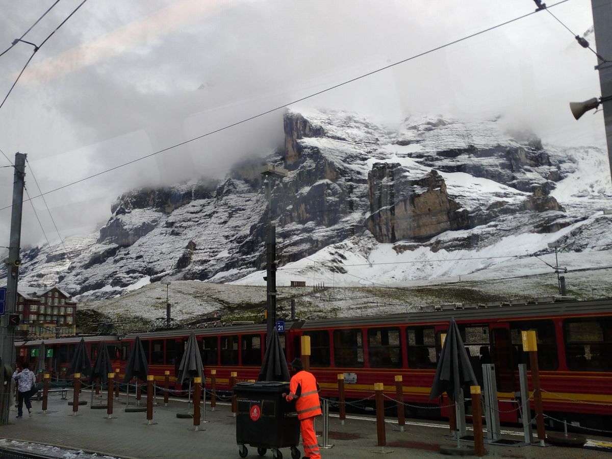 夏の旅でしたが,ユングフラウの山頂は雪景色でした。