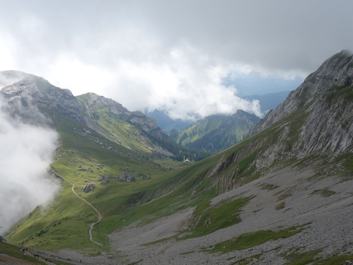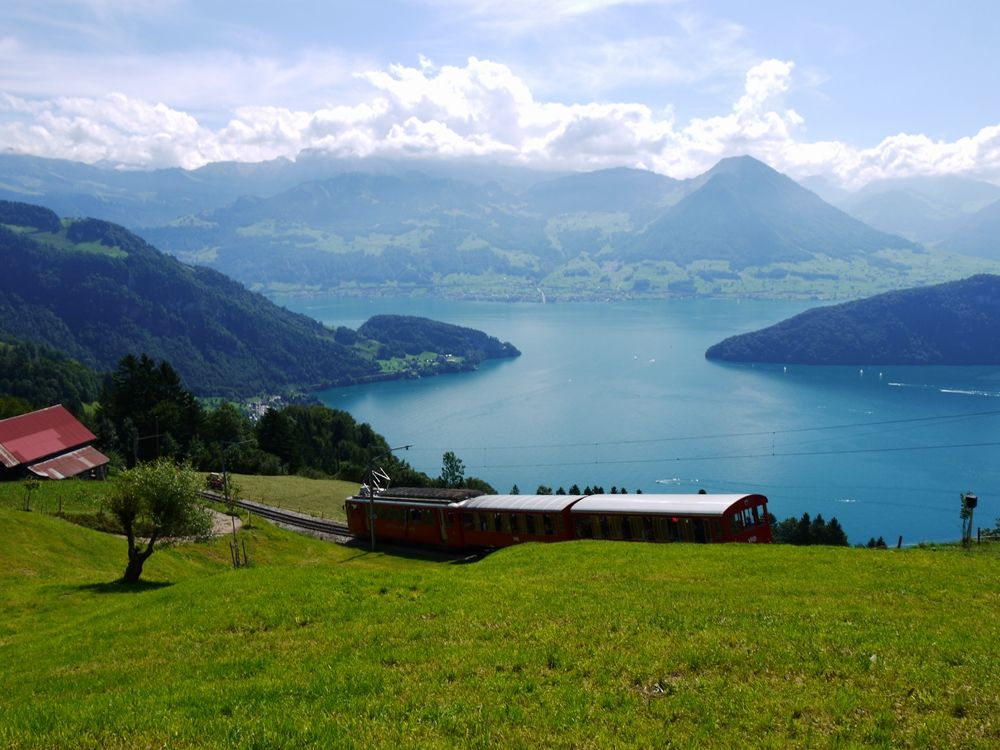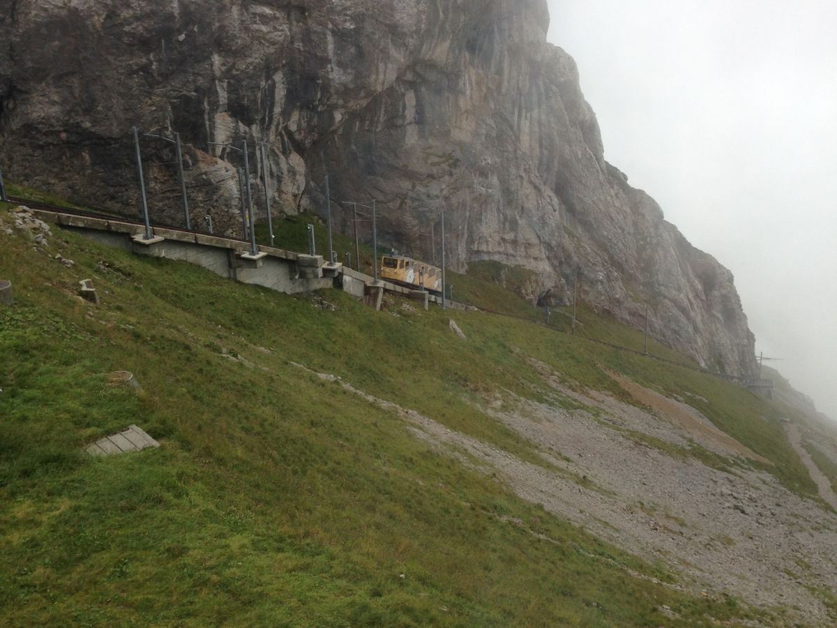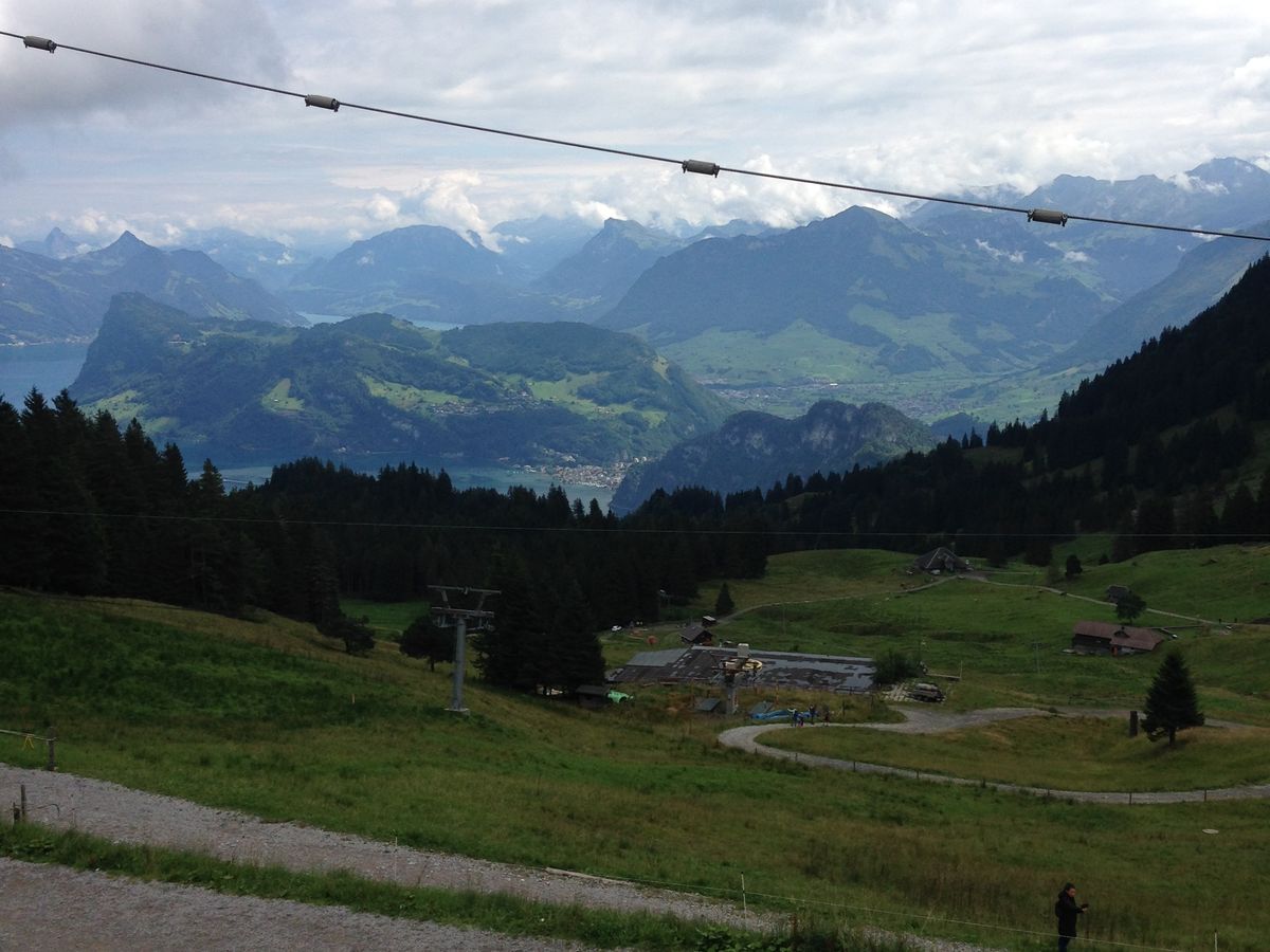 あいにく、リギ山頂は雲に覆われており、下界の景色は雲の隙間から少しだけ見えただけでしたが、山頂までの登山列車での往復の間は美しい山並みを楽しむことができました。
