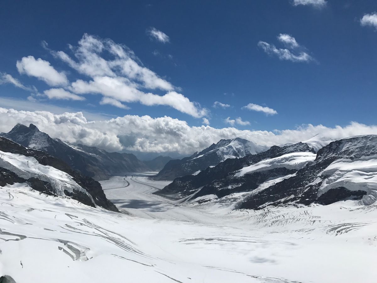 アイガー、メンヒ、ユングフラウが雲一つない状態で楽しめました。ユングフラウヨッホでは、時間もたっぷりあって、山を堪能するだけでなくリンツの安売りチョコやお土産を買ってレストランで景色を見ながらワインを飲む時間もありました。おすすめです。