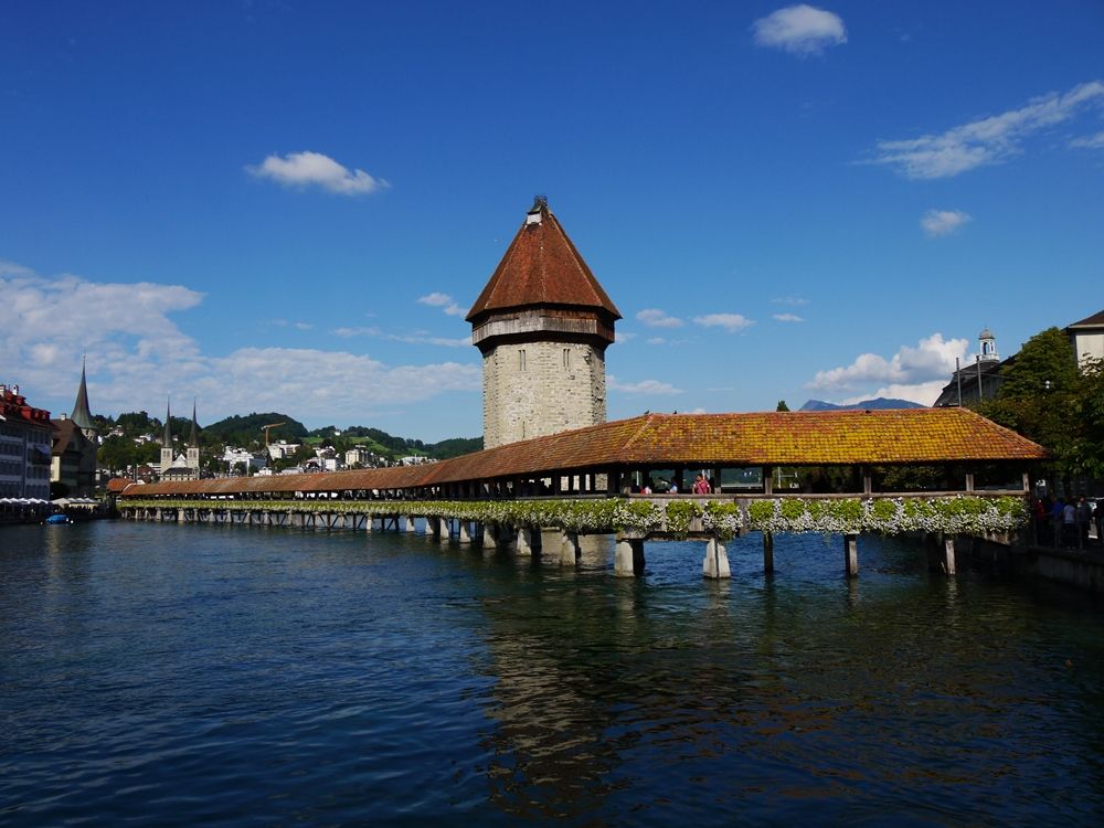 ルツェルンでは渡された地図を片手に散策してカペル橋に到着。