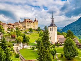 で、8:30くらいから「オ 二 バ(行きましょう!)」の掛け声と共に、バスは出発。ガイドの Babis さんはギリシャ人ですが、フランス語、ドイツ語、イタリア語、英語を話します。バス内での説明は英語ですが、ギリシャ語訛りのせいか、分かりにくいところがありました。そして、目的地である観光名所の Gruyeres 村に到着前にCailler社の「チョコレート工場見学」と目的地近くの「チーズ工場見学」がセットされています。