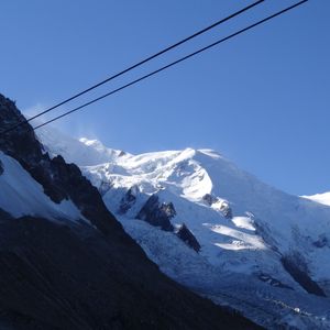 今回ジュネーブ留学の最後にせっかくだからモンブランに行きたいと思いこのツアーに参加しました。ツアーの内容は、日本語ガイド付きで、エギーユ・デュ・ミデイへのロープウェイ往復、モンタンヴェール、メール・ドゥ・グラス氷河往復、昼食が含まれました。ガイドさんは、日本語が堪能で、ほとんどいない日本人の方にも気さくに、丁寧に説明していただきました。当日の朝、ジュネーブの天気は曇りでしたが、シャモニー・モンブランは幸運にも快晴でした。到着後、午前中は展望台のあるエギーユ・デュ・ミデイへ、ロープウェイを2回乗り継ぎ、エレベーターで最も高い展望台に着きました。見渡す限り絶景、天気がよかったおかげで周りの山々がはっきりと観ることができました。