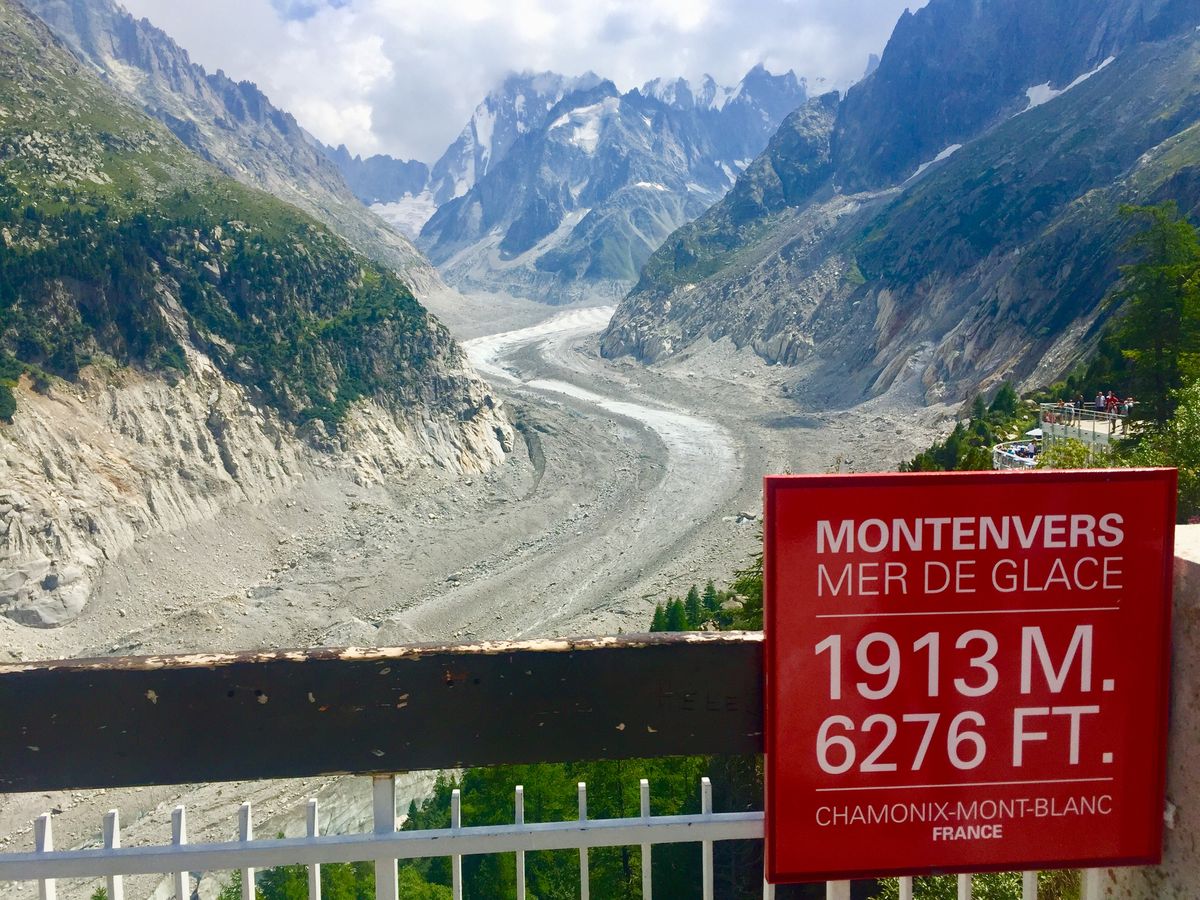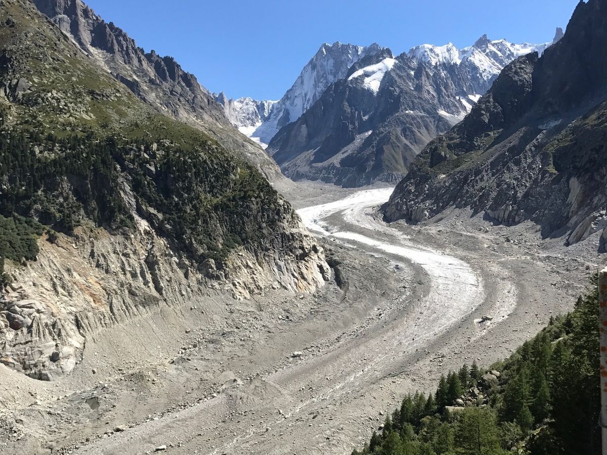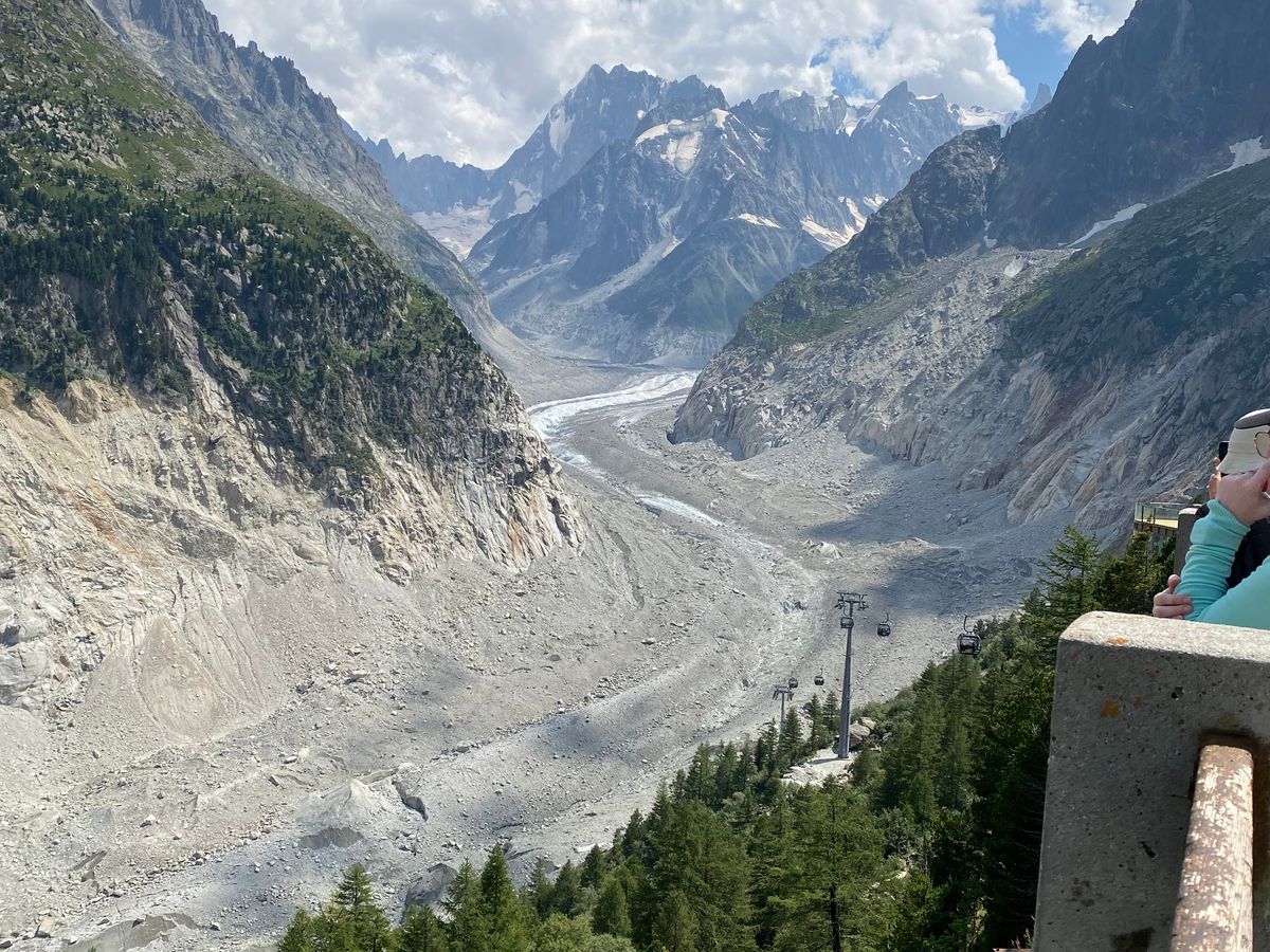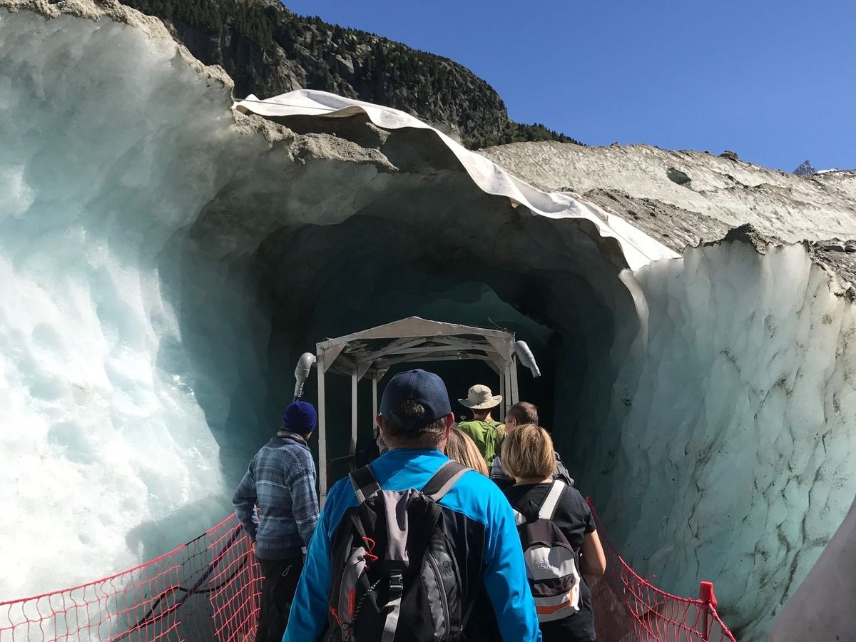 当初、氷河見学のプランで参加した。シャモニーに着き、好天で、Mont Blanc、ケーブルをその場で追加した。こちらは、好天で、3840mまで一気に登り、モンブラン頂上やガラスの箱で記念撮影など、素晴らしい体験ができた。一方で、午後、登山鉄道での氷河体験。遠くから、地球温暖化で、消えかかっていく巨大氷河の一部と工事中の現場、氷河の説明ブースで、温暖化の深刻な現状を知ったにとどまり、残念だった。有名な氷河のトンネル見物など、できないことを事前に伝えるべきとと思う。